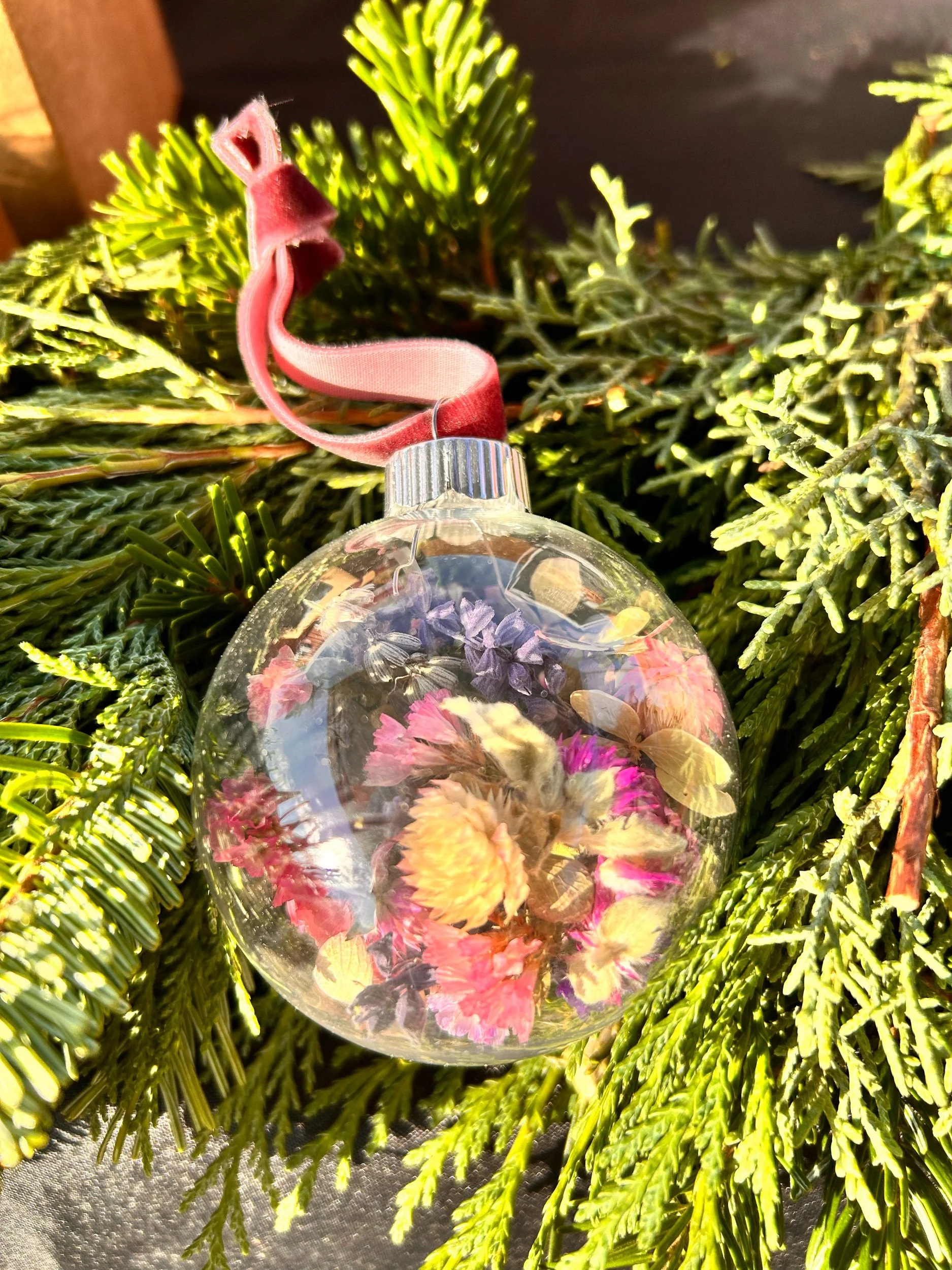 Our glass ornaments are filled with dried flowers from our fields. A colorful reminder or the past season and future flower seasons to come. Ornaments come wrapped for gifting. Pickup at our farmstand in Dillsburg, PA.